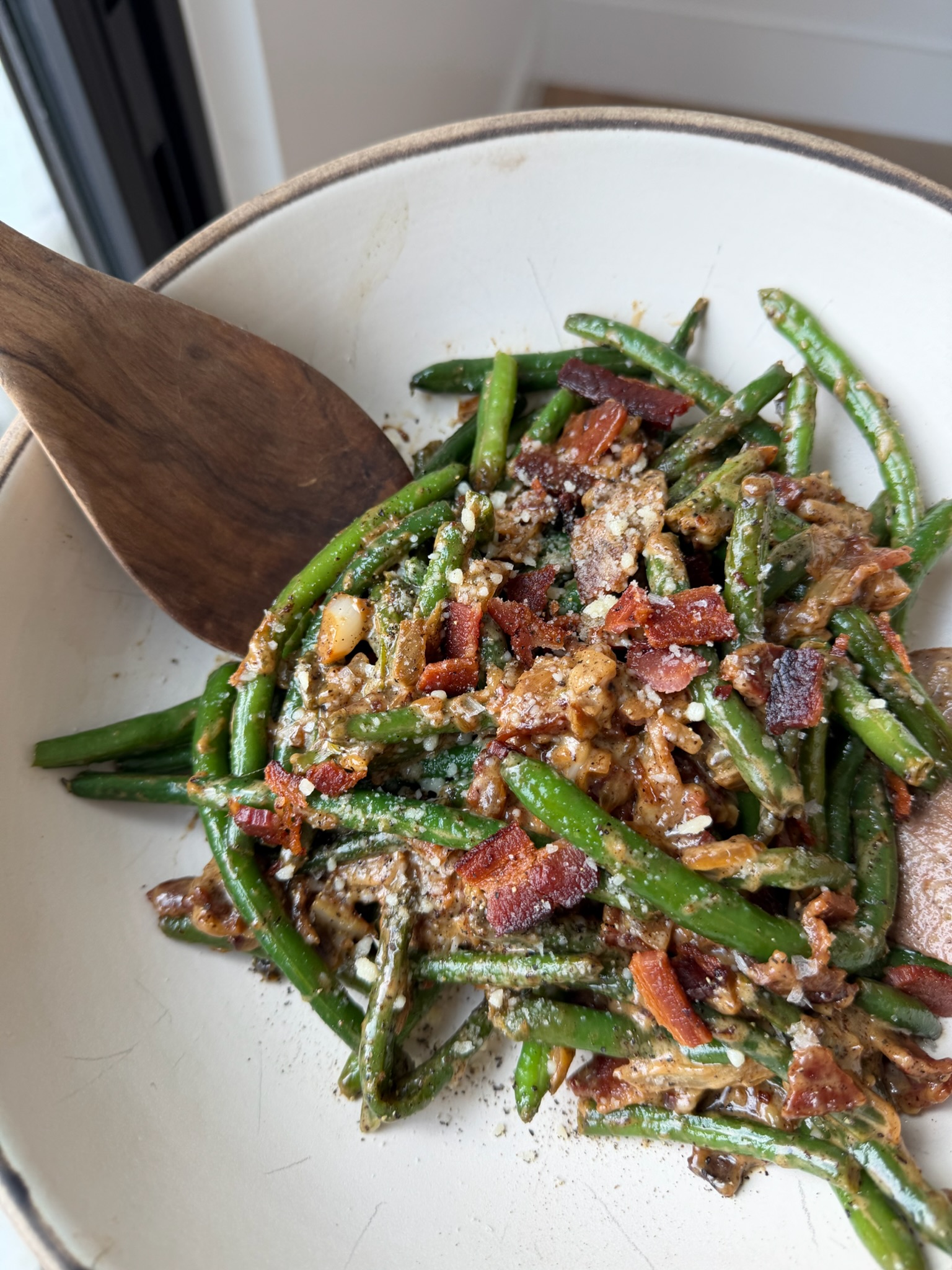 Creamy Garlic & Bacon Green Beans